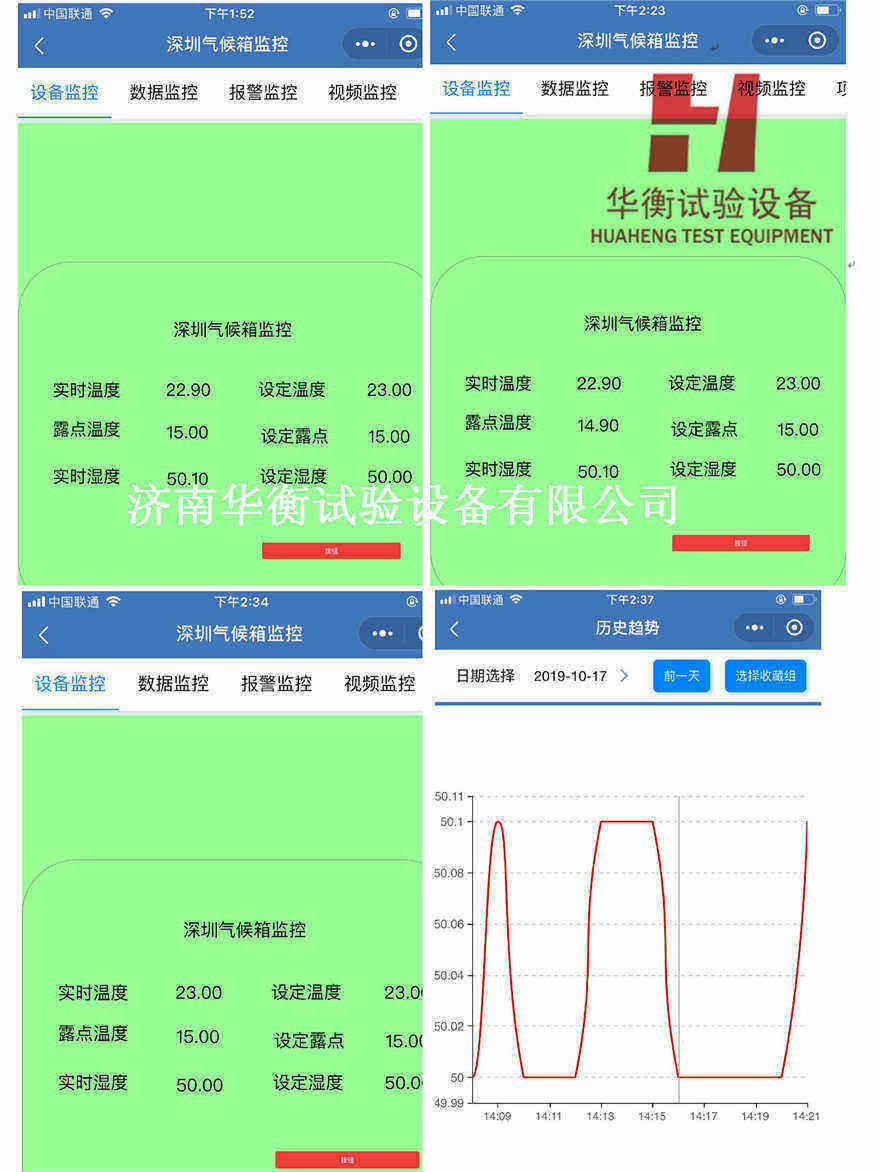華衡試驗設(shè)備針對預(yù)處理時間較長的情況,研制了甲醛預(yù)處理艙遠程監(jiān)控智能系統(tǒng),本系統(tǒng)可以實時監(jiān)控甲醛預(yù)處理艙運行狀態(tài),可以對甲醛預(yù)處理環(huán)境艙進行實時操作,實現(xiàn)了如同站在甲醛預(yù)處理艙旁邊一樣,節(jié)省了大量的時間,從手機上就可以進行操作。